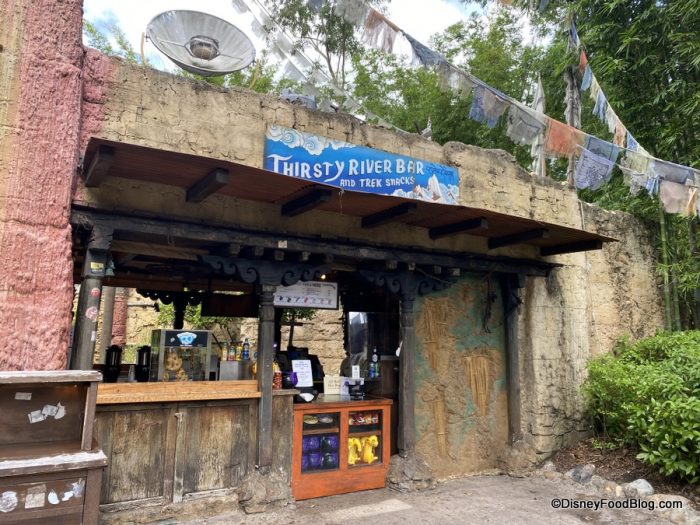 We’re trekking on back to Thirsty River Bar and Trek Snacks in Disney’s Animal Kingdom. You’ll find this spot just steps away from Expedition Everest in Asia, serving up sips on one side, and snacks on the other!