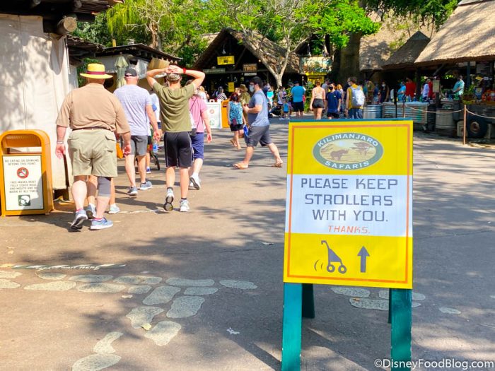 There were some major changes to the Kilimanjaro Safaris queue! So far since reopening, stroller parking was near the main entrance of the ride, over by the ice cream cart.