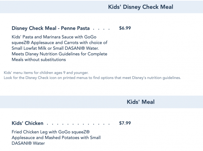 On the kids’ menu, options are scarce as well. You can either order Penne Pasta (which qualifies as a Check Meal), or the Kids’ Chicken.