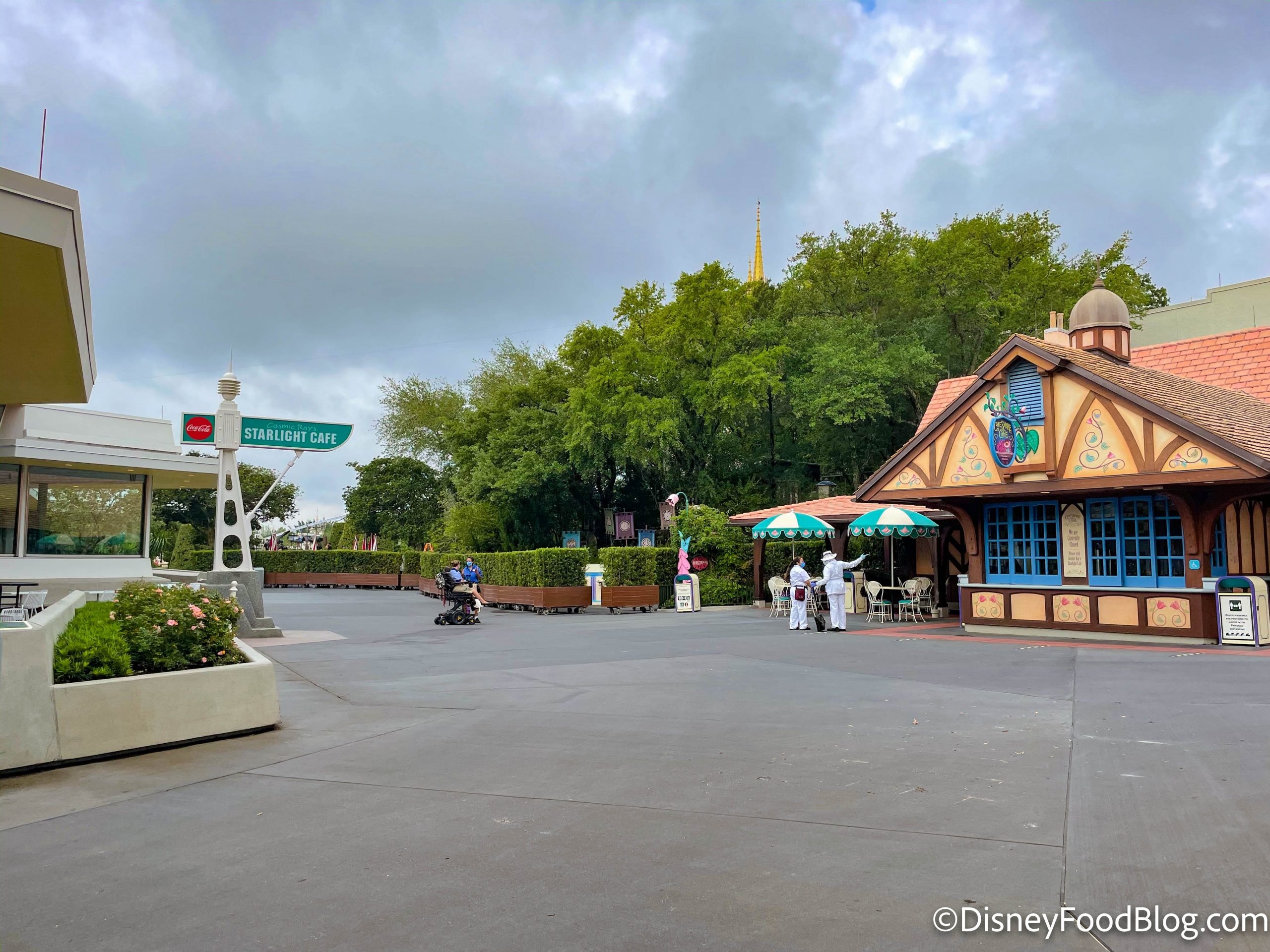 If you normally take this path to get over to Cosmic Ray’s or Mad Tea Party and Storybook Circus, then you’re going to want to go through Tomorrowland instead. You can also take the path straight through Cinderella Castle to avoid this area. (Make sure to check out our Magic Kingdom map to see how to navigate the park more easily!)