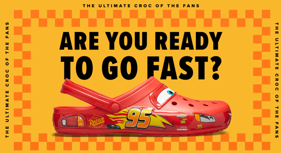 And this one is for all you Cars fans! That’s right — Lightning McQueen is zooming onto pairs of red adult Crocs soon!
