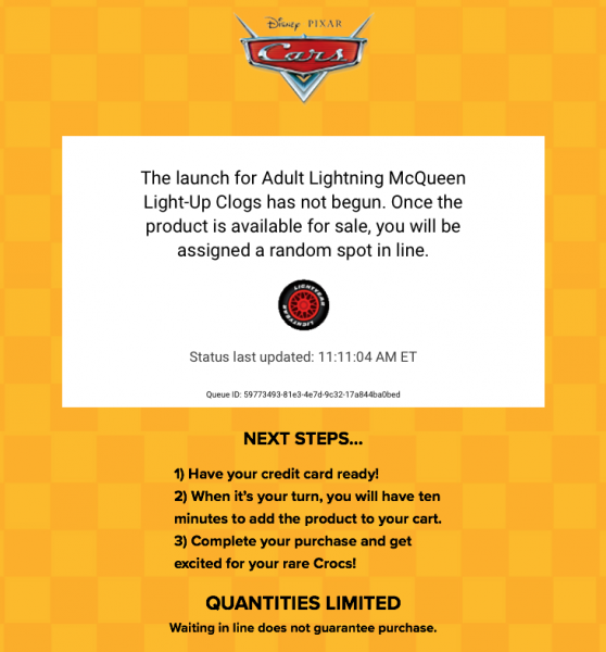 When we clicked it, it took us to a separate page indicating that the shoes hadn’t been released yet (when we clicked it, it wasn’t 12PM EST yet). It also specified that once the product is available for sale, you will be assigned a random spot in line. When it’s your turn, you’ll then have 10 minutes to add the product to your cart.