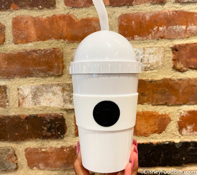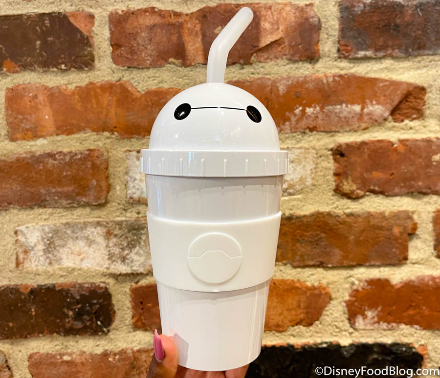 The super minimal design features a few distinctly Baymax details, like his eyes and chip port. There’s also a straw for easy sippin’!