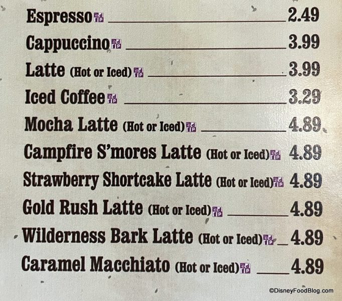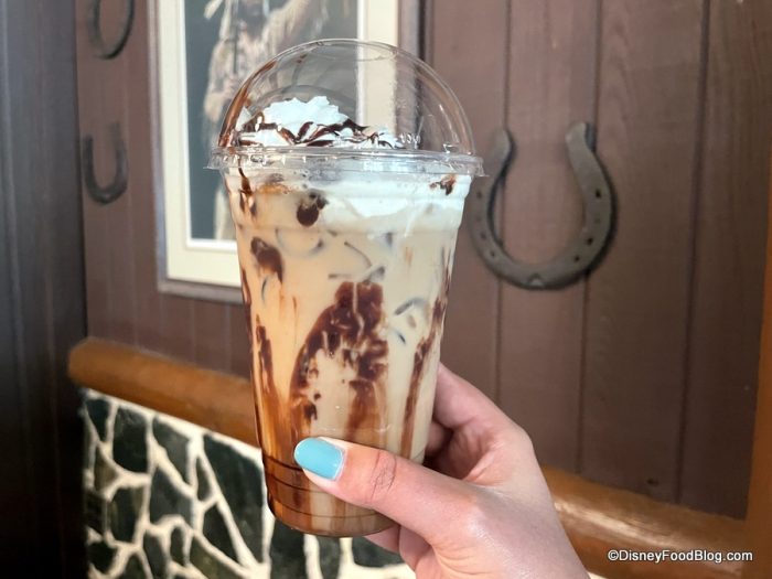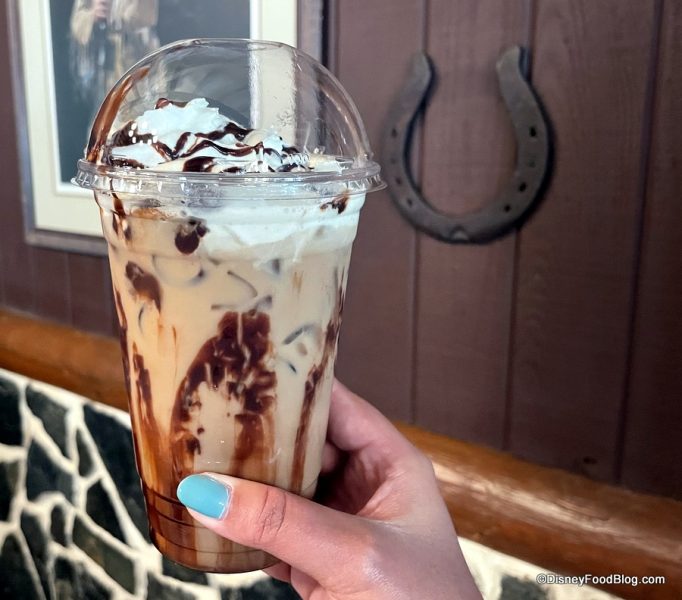 The Wilderness Bark Latte isn’t entirely new in these parts, by the way… it’s also served at Wilderness Lodge, where we’ve previously enjoyed it hot. You can find it at Roaring Fork these days, too.