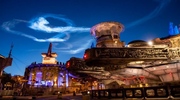 But, sometimes unique moments line up perfectly with the beautiful Disney scenery and create some truly spectacular photo opportunities! And that was certainly the case with SpaceX’s overnight launch. Ever wanted to look at a real space rocket blasting off from inside Star Wars: Galaxy’s Edge?