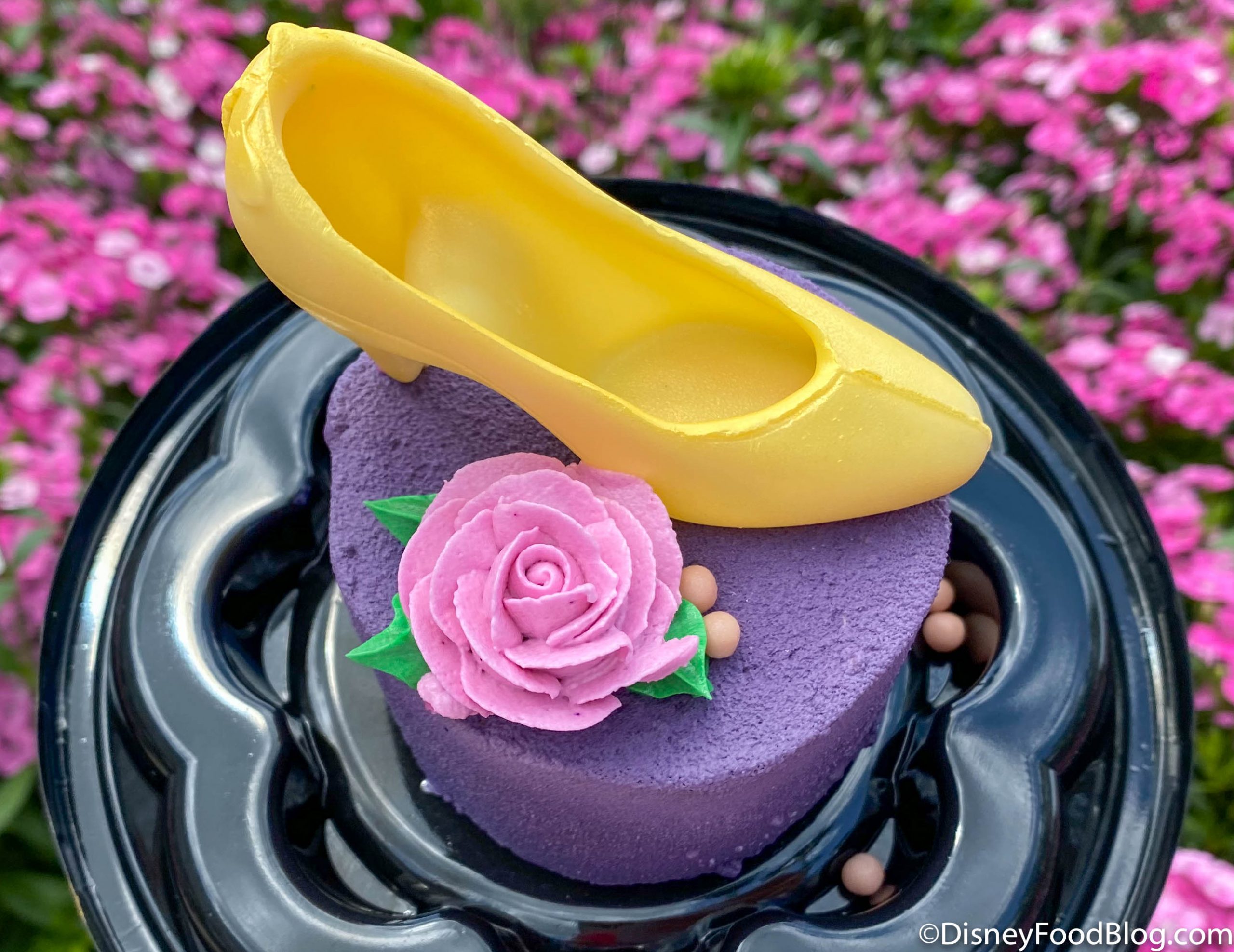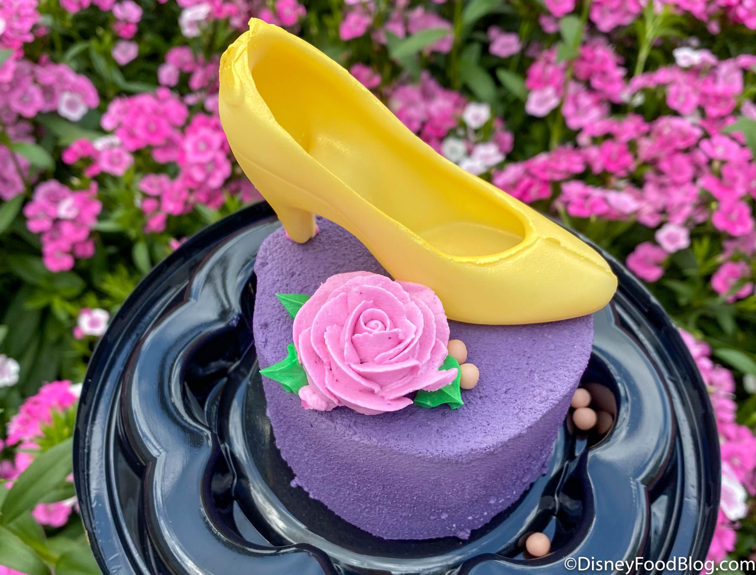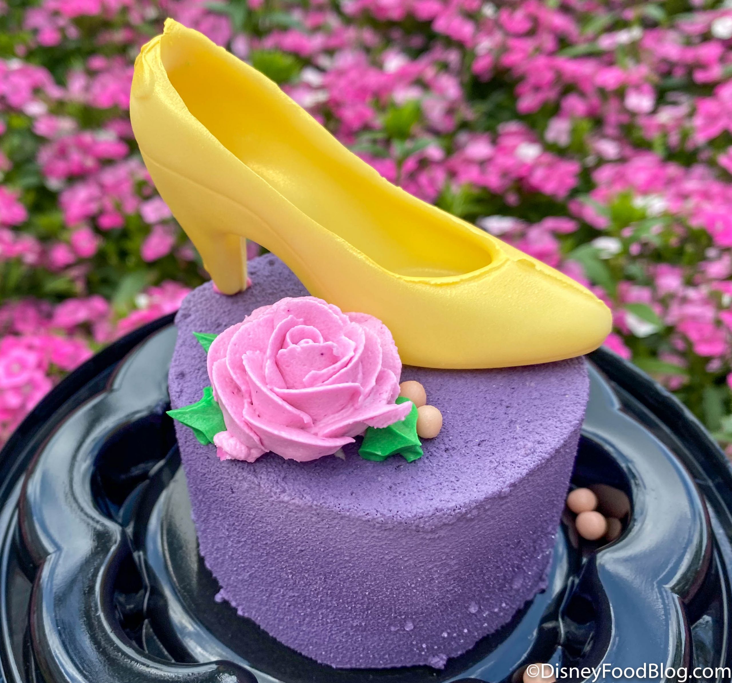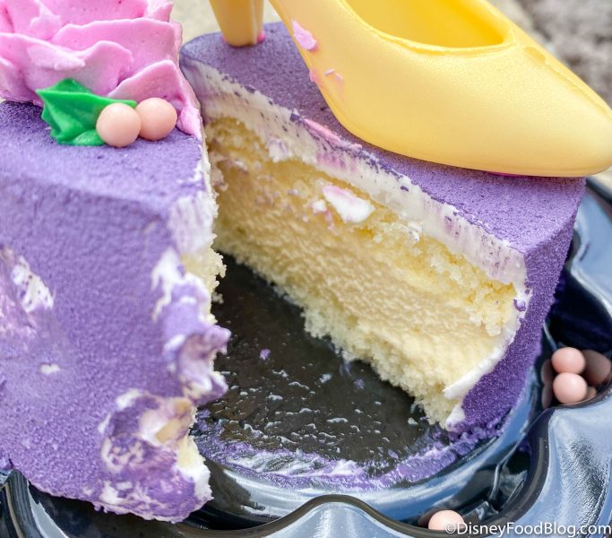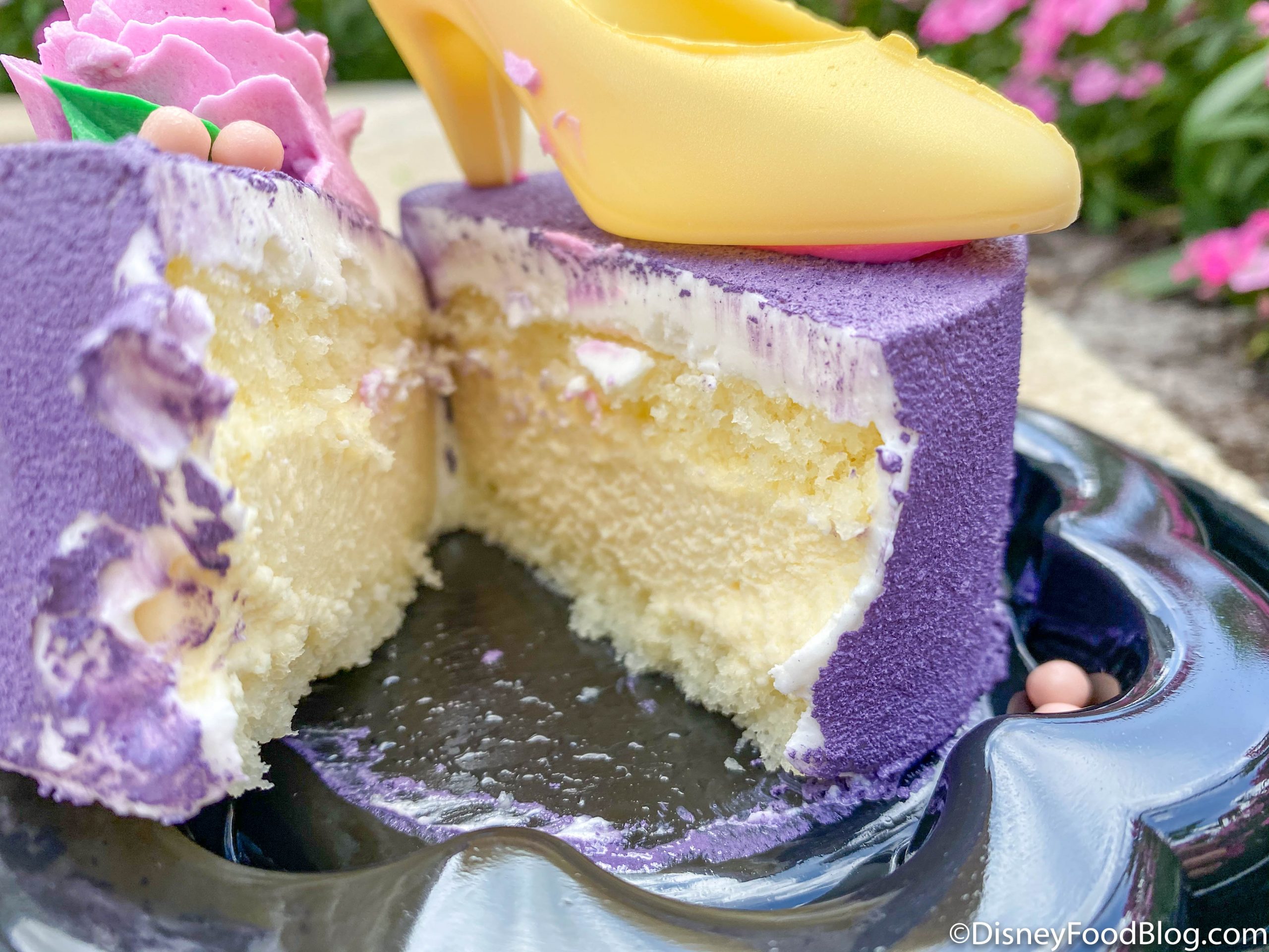 This cake is beautiful, there’s no denying that. The Cinderella Slipper on top is such a wonderful touch, and the vibrancy of the purple cake against the yellow slipper is great.