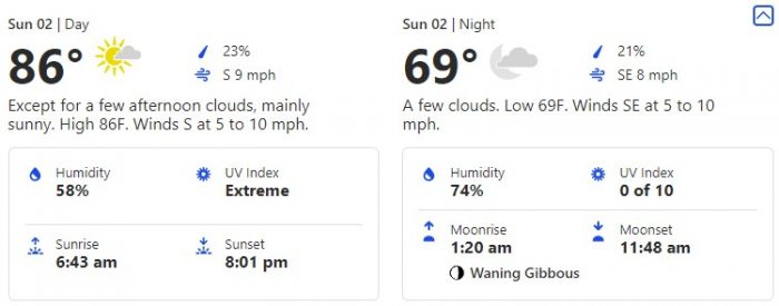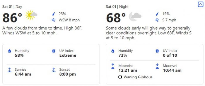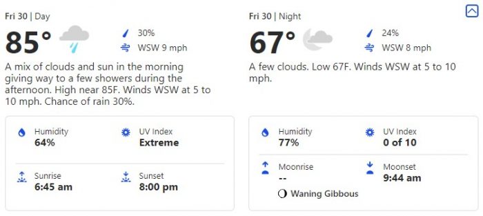 Here, we’ll see an 86-degree high and a 68-degree low.