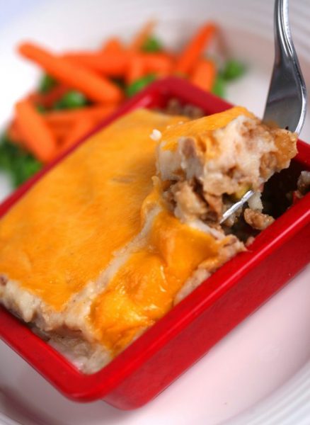 - Spread mashed potatoes over mixture, then top with cheddar.