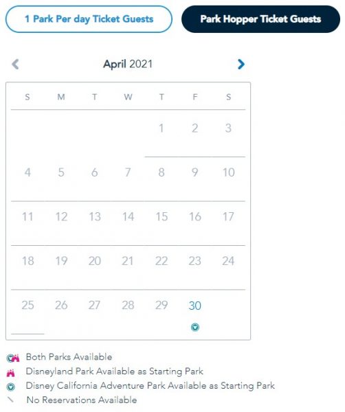 Previously, you can see that both Disneyland Park and Disney California Adventure Park were unavailable for Park Hopper Ticket Guests.