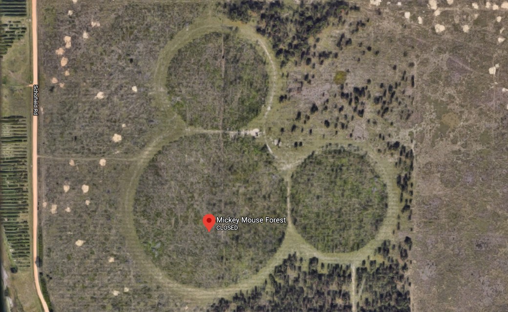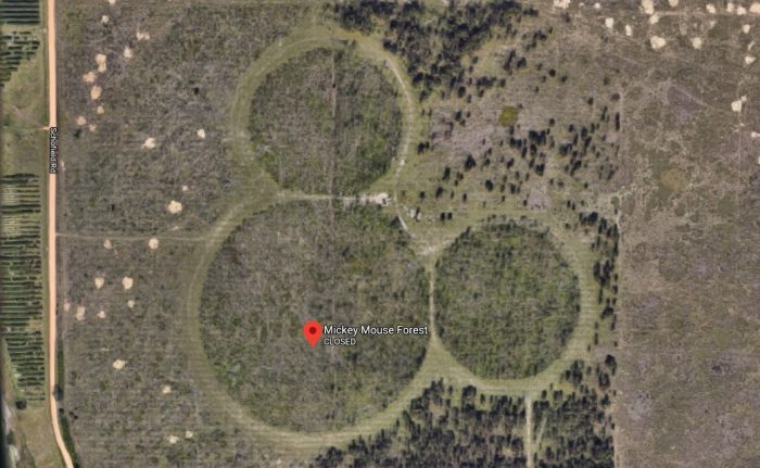 Number 18, the trees in a Mickey shape have been half bulldozed as of the beginning of 2021 as is visible on Google Earth. Most of the trees were removed from the entire Mickey before bulldozing occurred. Would like to know the story to why this happened?