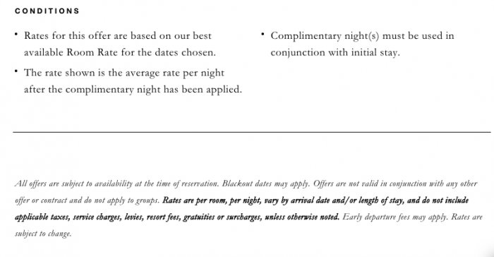 The offer is valid from May 1st-September 30th, 2021. You’ll have to stay a minimum of 4 nights to take advantage of the deal — but you can always stay longer to score extra savings! On an 8-night stay, for example, 2 of those nights would be free. There are a few terms and conditions you’ll want to know about, which are listed below: