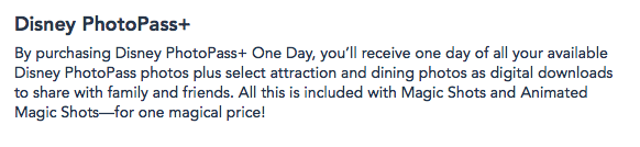 What is PhotoPass+ One Day you ask? Well, for that $19.99 price, you get UNLIMITED downloads of your Disney PhotoPass photos from one day, plus select attraction and dining photos as digital downloads.