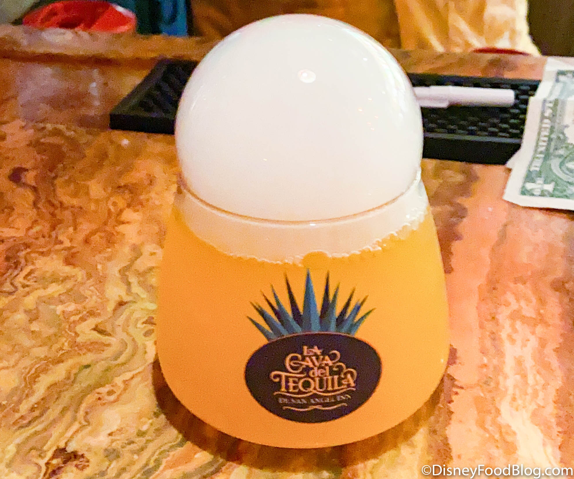We returned to La Cava del Tequila today to give the Alebrije another try! It’s Centinela Blanco Tequila, Chinola Passion Fruit Liqueur, Fresh Lime Juice, and a Mixed Berry Bubble. As for that souvenir cup it comes in? There were only supposed to be 100 of ’em, but 2 months later Disney’s still giving them out!