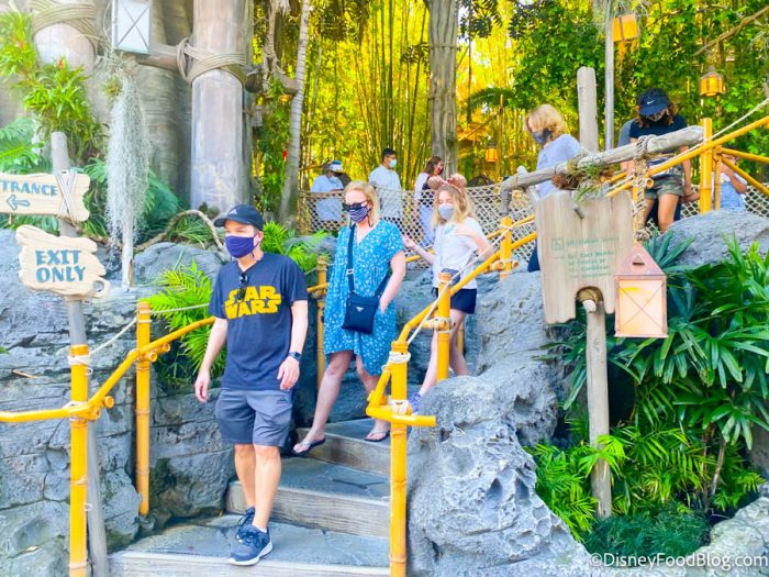 We spotted that lines are all physically distanced. You can see what we’re talking about with the Pirates of the Caribbean line!