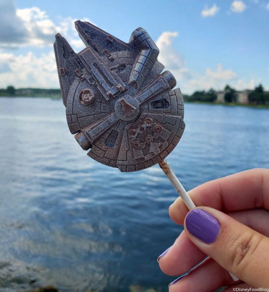 Millennium Falcon Chocolate Pop – Milk chocolate pop with crispy pearls (available April 30th through May 5th)