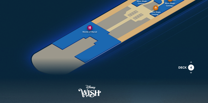 In terms of where the restaurant will be located, Disney’s current deck plans show Worlds of Marvel as located on Deck 4.