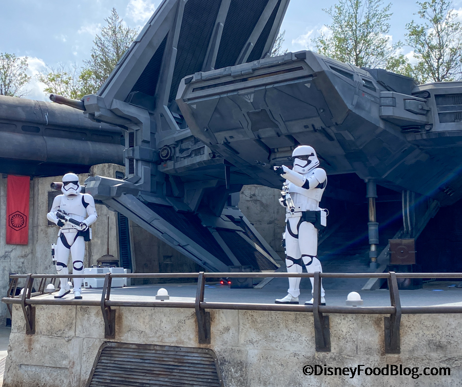 According to Handke, the Endor scene is actually his favorite. Guests will actually see a skirmish scene, “where Resistance and the First Order are fighting each other. You get the laser fire, you get the TIE fighter explosion, and then at the very end we have these three X-wings that come down in front of our screen and protect us.”