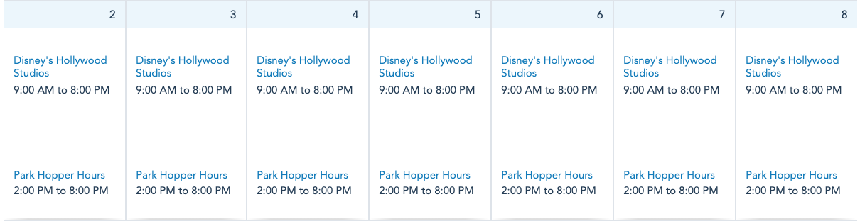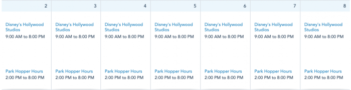 Next week, Disney’s Hollywood Studios will be open daily from 9AM-8PM.