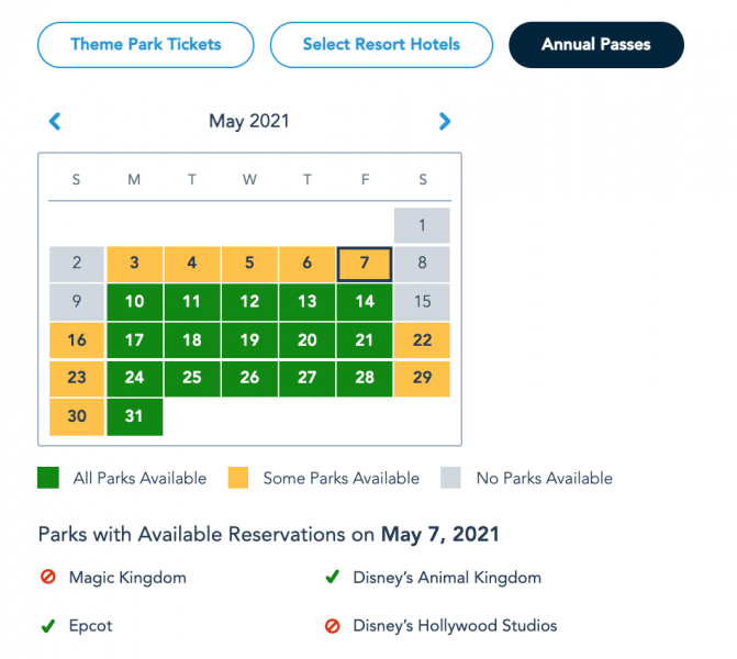 Finally, on Friday, May 7th, Annual Passholders can currently book a Park Pass Reservation at EPCOT and Disney’s Animal Kingdom.