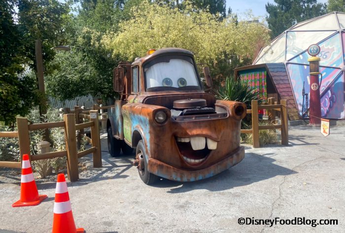 Over in Cars Land, Mater was out and about near Fillmore’s Taste-In (which is currently closed).