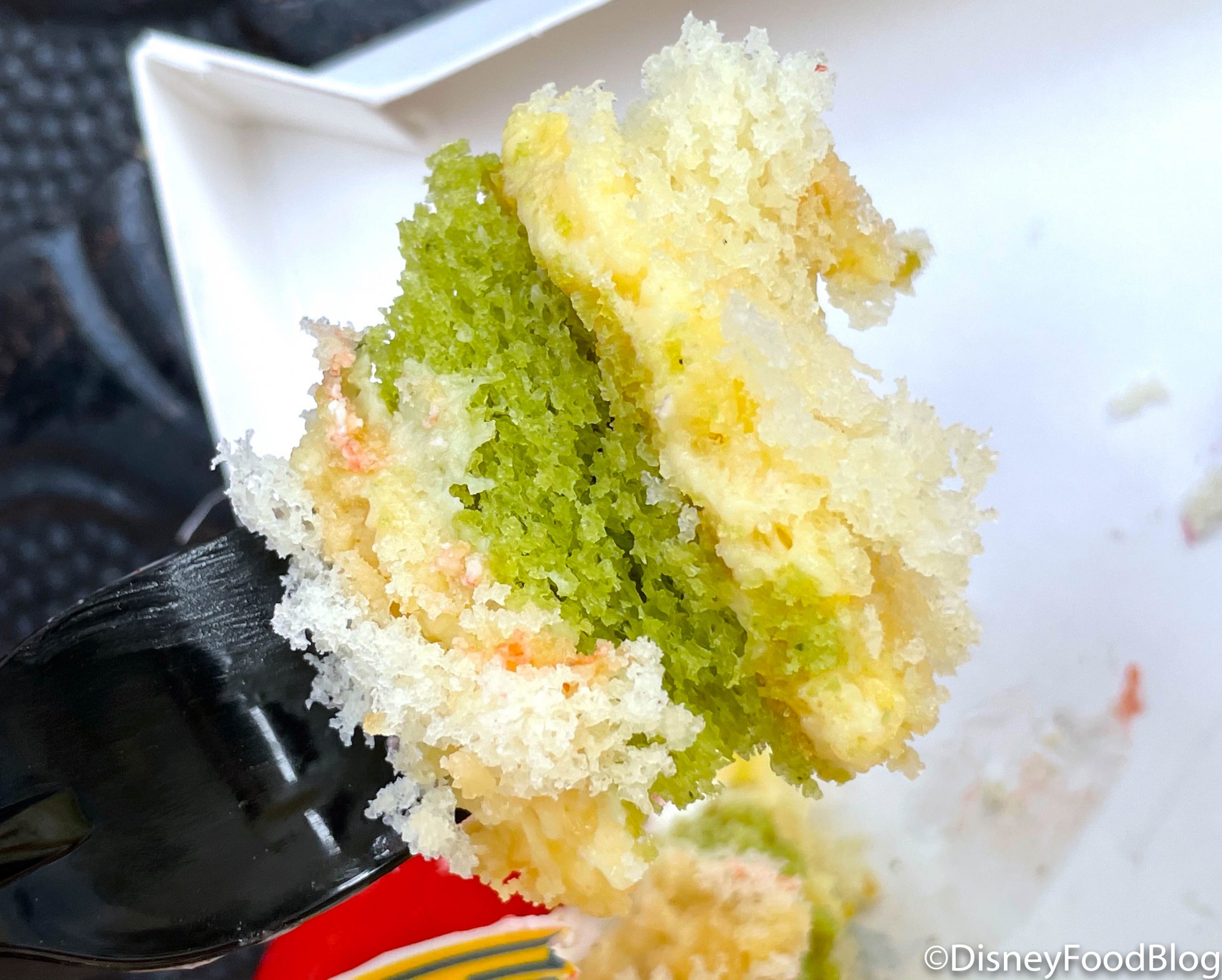 We could taste notes of the green tea and ginger within the cake, but the most prominent flavor was the lemon. So, if you’re a fan of lemon treats, this one will be right up your alley! But, your kiddos may want to skip this one too, since the flavors are just a bit more sophisticated than the regular chocolate and vanilla they may be used to in Disney World.
