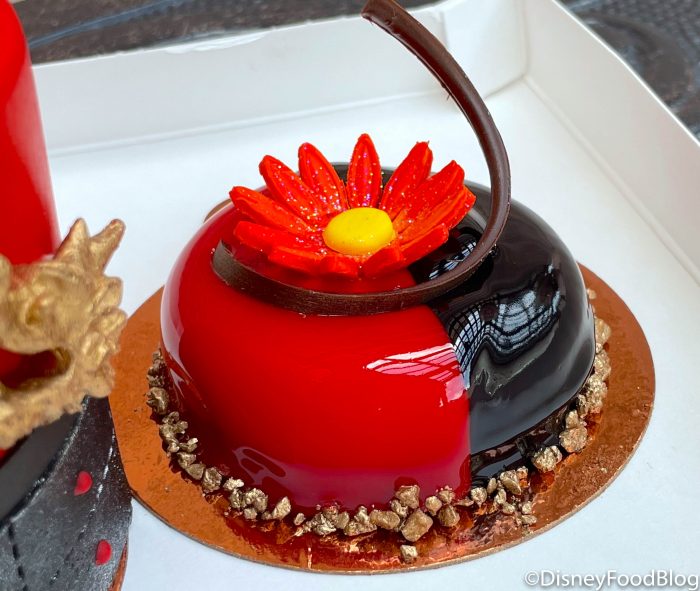 Amorette’s is also hosting the Mulan Petit Cake again! When the live-action Mulan film was released, the treat arrived on the scene a year ago, but we weren’t able to try it before the park closures. But, now the cake is back for Asian Pacific Heritage Month!