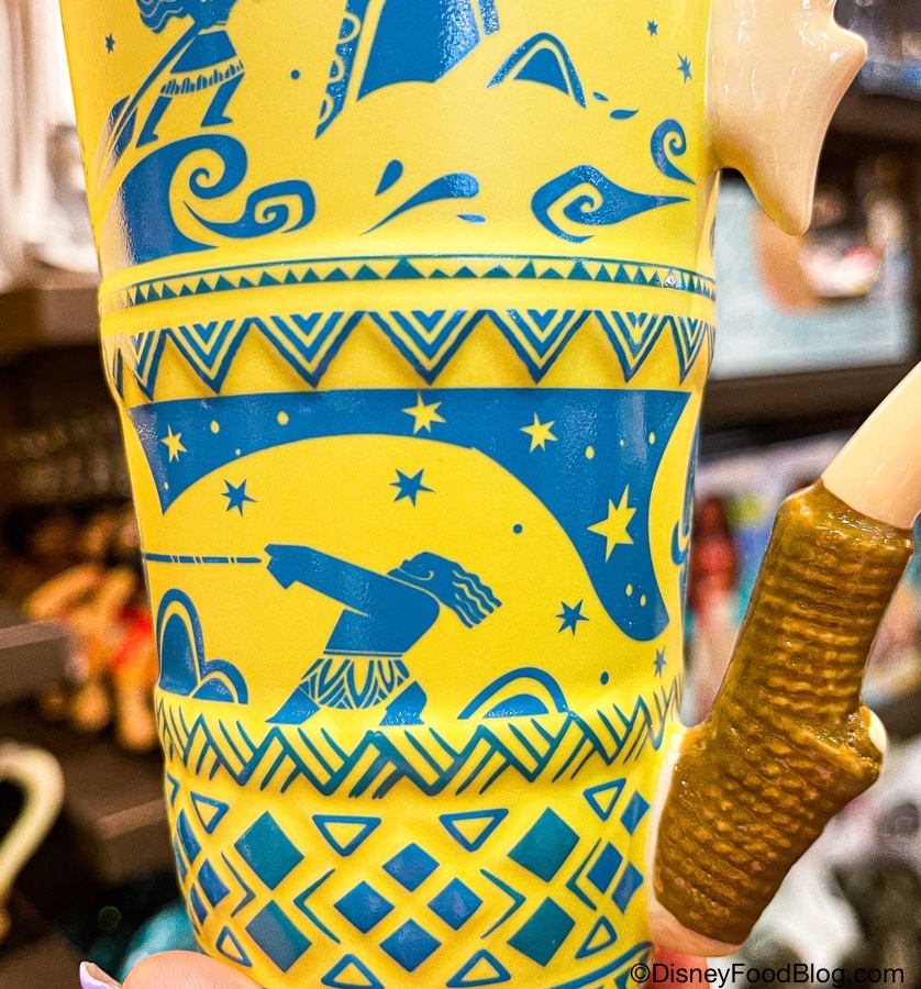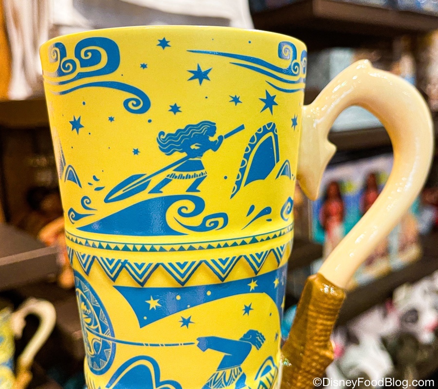 Seriously, this thing is INTRICATE. It’s an over-sized yellow mug with a handle that looks like Maui’s fish hook (!!), and the fun doesn’t stop there!