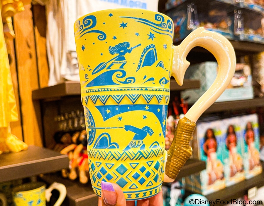 Between her upcoming EPCOT attraction, her own Disney+ series, the Moana-themed rooms taking shape at Disney’s Polynesian Village Resort, her Character Cavalcade appearances, and all the recent merch, it seems like the Disney star is suddenly as popular as Baby Yoda! The hype shows no signs of slowing, especially at the Polynesian, where we spotted a NEW Moana mug LOADED with unique artwork!