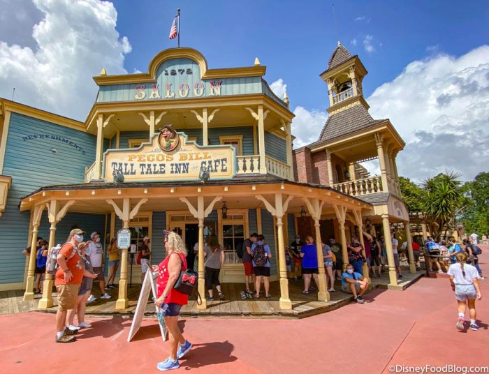Coming in at number eight is Pecos Bill Tall Tale Inn located in Frontierland at Magic Kingdom! Back when we could have food out in the open, a few different Disney World restaurants boasted a complimentary toppings bar. THIS was the place that we would come back to over and over again to PILE on the condiments!