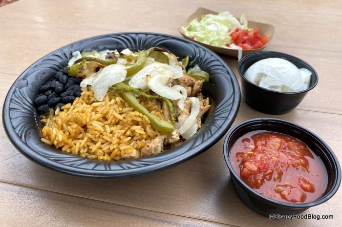 Next up we’re talking about Satu’li Canteen in Pandora — The World of Avatar at Disney’s Animal Kingdom! We’re not talking about the Cheeseburger Pods today (though they are still very much worth trying), we’re talking about the Create Your Own Satu’li Bowl! You can DIY your meal from Pandora and choose a protein (Beef, Chicken, Chili-Garlic Shrimp, and Chili-Spiced Crispy Fried Tofu), choose a base (Quinoa and Vegetable Salad, Red & Sweet Potato Hash, Mixed Whole Grain & Rice, and Romaine & Kale Salad), and, most importantly choose a SAUCE!