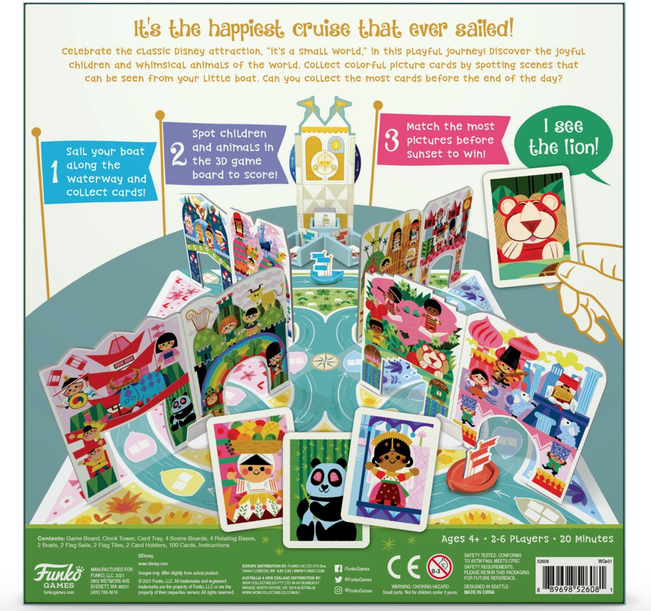 It’s an even smaller world than you’ve ever seen before now that you can take the fan-favorite attraction with you wherever you go! Disney’s new “it’s a small world” Board Game lets your whole family try to collect picture cards as they spot scenes from their mini boats.