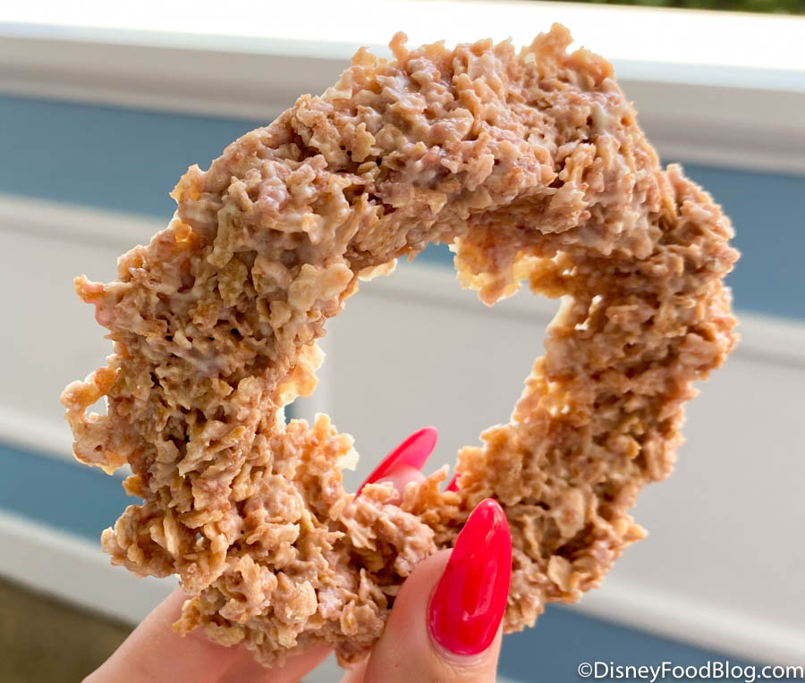 This treat had a really nice crunch to it, kind of like a sweet cereal! The peach taste was subtle — in fact, we really got notes of strawberries.