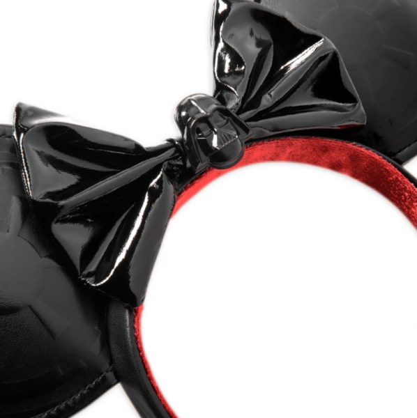 These ears feature a sith color scheme of red and black with Darth Vader designs on the ears themselves. The bow is a cool, shiny black material with a tiny Darth Vader helmet at its center.