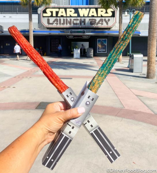 You’ll have to choose whether you support the Dark or the Light Side when you head to the churro carts because you can pick up red or blue lightsabers (ahem, churros) with chocolate sauce on the side for dipping.