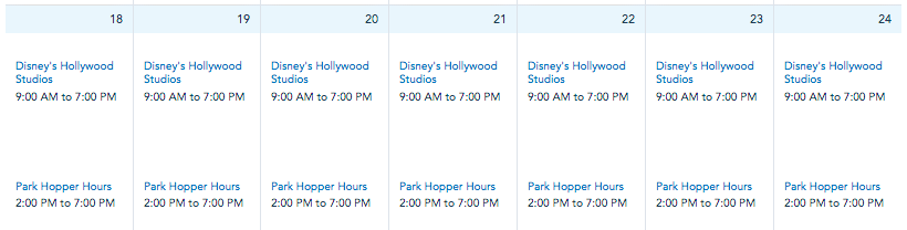 At Disney’s Hollywood Studios, park hours run from 9AM-7PM.