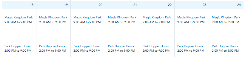From July 18th-24th, Magic Kingdom will be open from 9AM-9PM…
