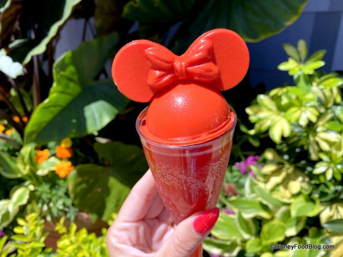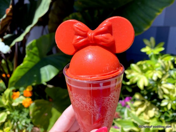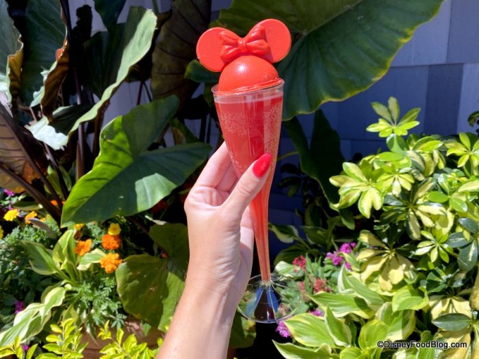 Of course, you could order a Mimosa with Rosa Regale, if you prefer. Either way, it’s topped with a signature white chocolate Minnie topper, complete with a bow!