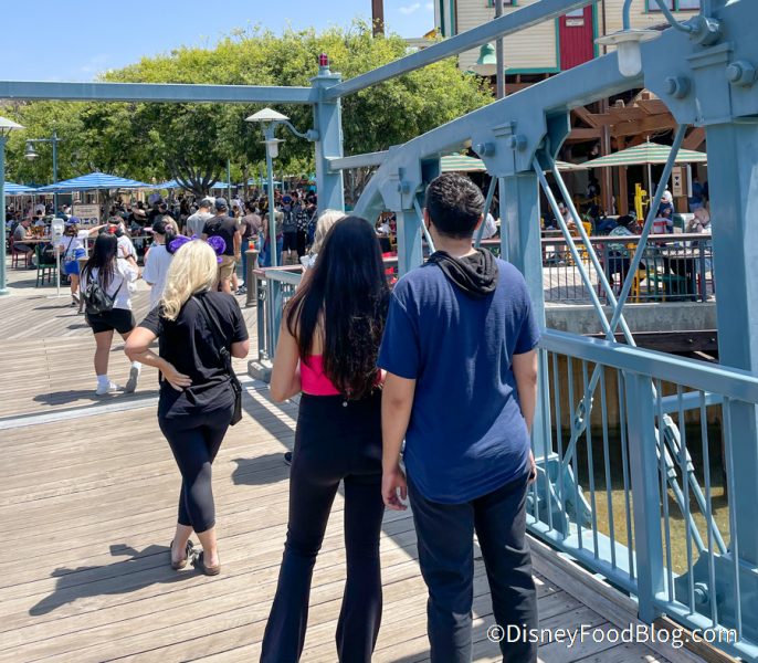 The line waiting for food was backed up onto the bridge leading to Pixar Pier!