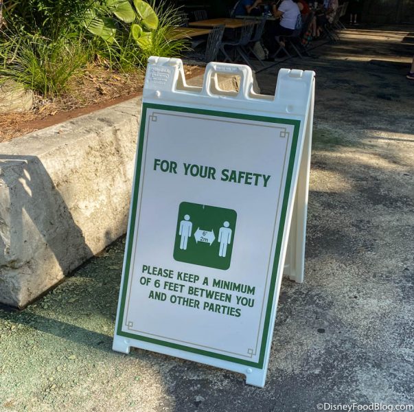 Disney World is not lacking in social distancing reminders either. Posted at park entrances and throughout the park, you’ll see health and safety signage that reminds guests to stay six feet apart from one another.