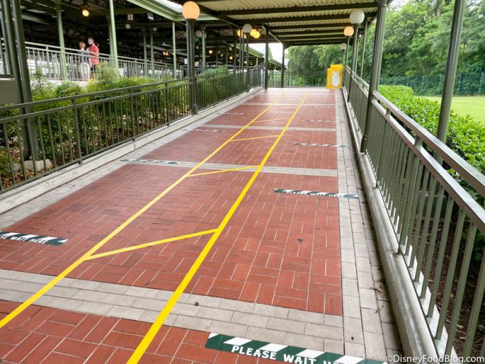 Dining locations still have social distancing measures in place too. For one, quick service spots are still HEAVILY encouraging Mobile Order to limit your interaction with Cast Members. While you wait for your Mobile Order to be ready, you wait outside of the restaurant.
