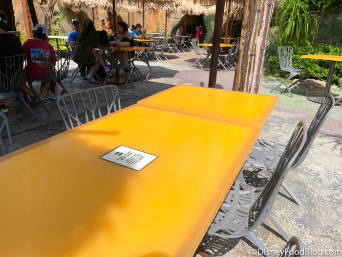 Both table-service restaurants and quick-service restaurants have limited capacity in dining areas. You’ll notice that table seating is still distanced to six feet apart both indoors and outdoors.