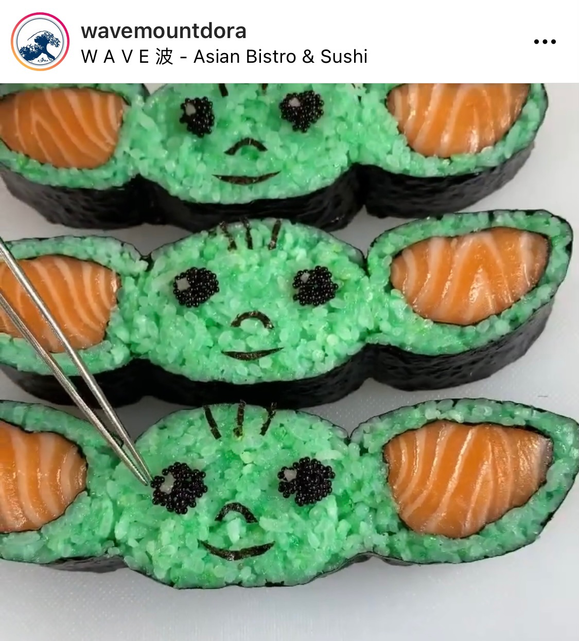 The Instagram account for restaurant @wavemontdora recently posted a video of their “Baby Yoda” sushi roll, and we’ve got the recipe for you!