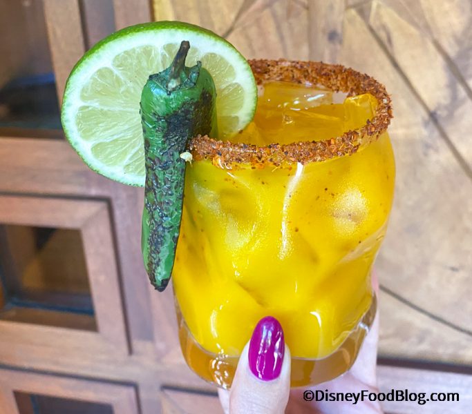 And we are here to tell you that the “spicy” part of this drink holds true because OOOOOH, BABY, is this drink spicy. It could be the spiciest drink we’ve ever had at Disney World — even spicier than the El Diablo from La Cava del Tequila.