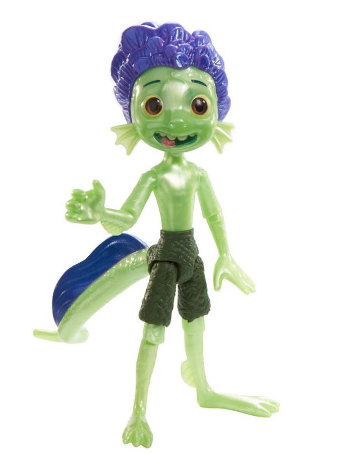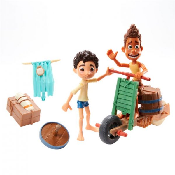 Items include action figures of Luca’s main characters, Luca and Alberto, as their sea creature personas (spoiler alert: they’re sea creatures), along with fish, crabs, and other nautical accompaniments.
