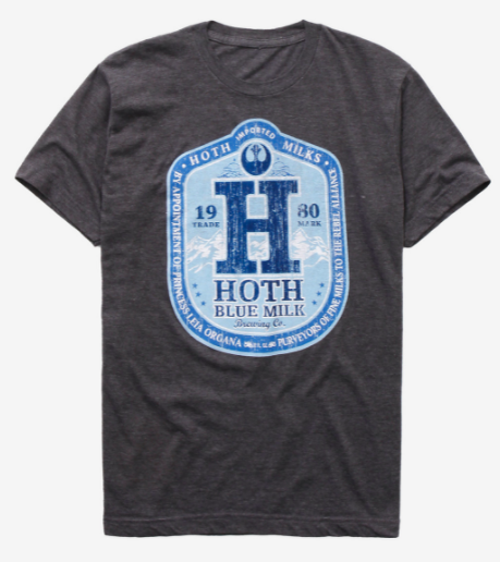 Or, you can advertise your love for Blue Milk by wearing the Hoth Blue Milk T-Shirt! And hey — we even spot the Resistance symbol on the logo. 😉