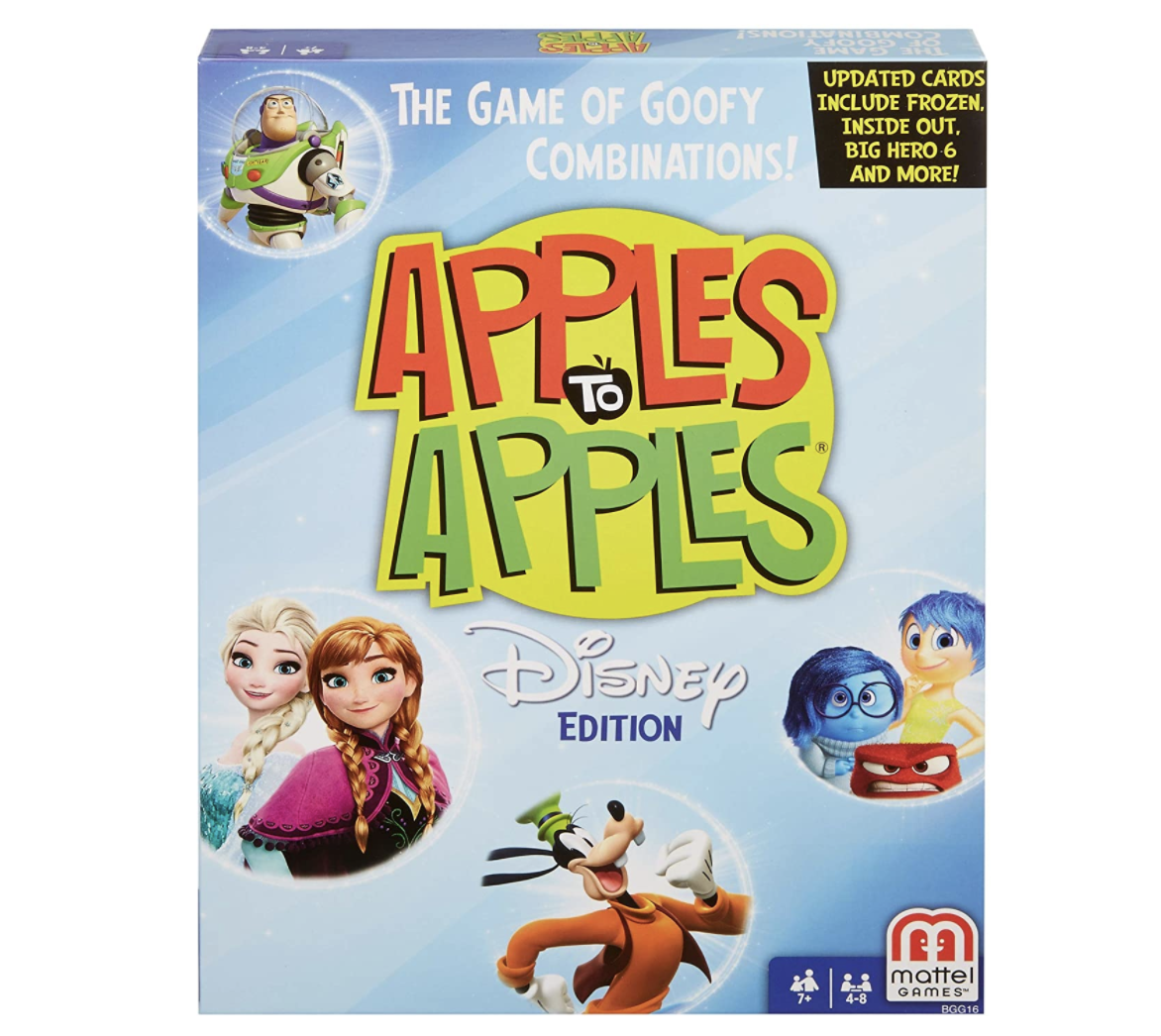 Or, you can get Apples to Apples: Disney Edition and see who can come up with the funniest combinations! The cards have even been updated in this version of the game to include characters and themes from Disney’s Frozen, Inside Out, and Big Hero 6!