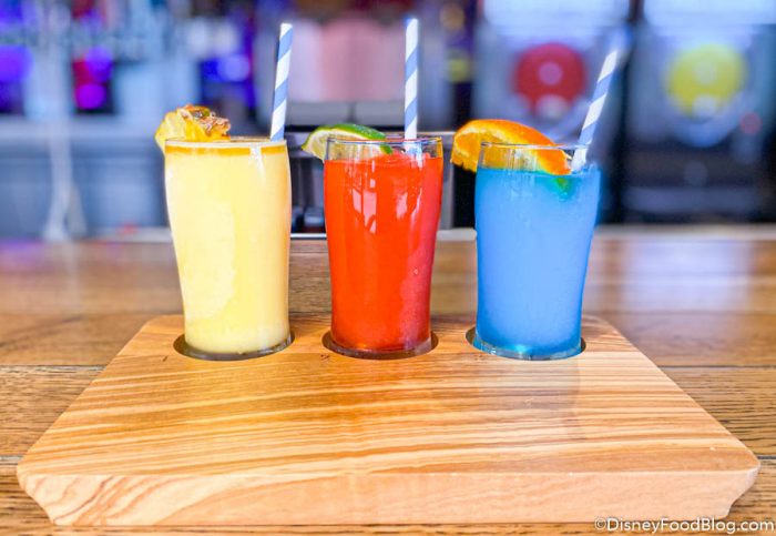 We’re trying one option that’s been at the Bamboo Bar since it opened and one that’s TOTALLY NEW to the menu! First up, the new one (duh). Take a look at the Frozen Flight for $16.