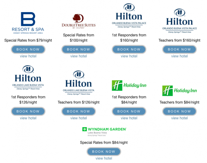 Teachers and first responders qualify for unique savings at 6 Disney Springs area hotels! We’ve seen these groups get discounts here in the past, and now, the special rates are BACK. You can check ’em out below! Special rates range from $84 per night at the Holiday Inn to $160 per night at the Hilton Orlando Lake Buena Vista Palace.