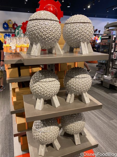 Close by, you can pop into Mouse Gear to find all sorts of goodies on the shelves! The Spaceship Earth Cookie Car has been restocked for $55…