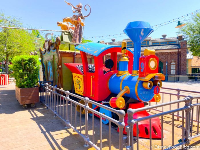 Over in Storybook Circus, the repainting continues on the Casey Jr. Train but recently, the train’s face was uncovered and you could see some different areas marked off for painting.